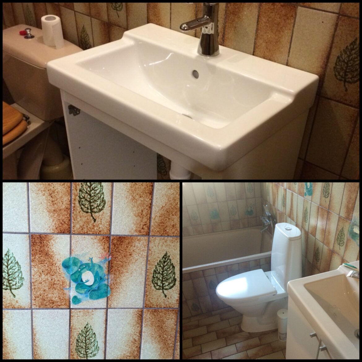 Vi gav væggene en omgang hvid maling. Fliserne fik vi malet matsorte og sikken en forskel, det gjorde. Trælågerne kom til en autolakerer, og sikke han har kunnet trylle. Køkkenlågerne ser ud som nye og er sådan lidt shiny. Så hvis nogen går og overvejer en autolakerer, så gør det!! Det kan virkelig give gamle krager og låger, et nyt liv:-)